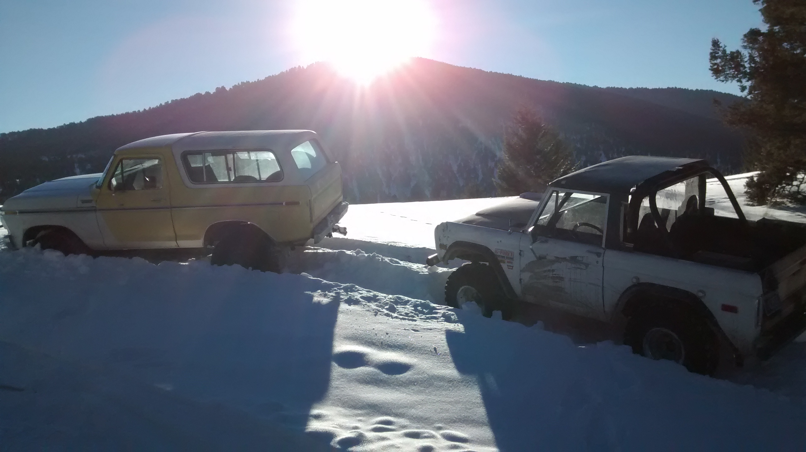We were in the sugar too. Some of the Crystals were half the size of my pinky. We were breaking trail very very slowly and fell far short of the top of the mountain. There was probably only 18" of new snow, so we weren't really pushing any snow, just couldn't get any traction at all. I kept hoping get around the mountain into the sun hoping for better traction, but we never made it. We probably would have been stopped by some pretty big drifts regardless. Need that base to setup. I took a couple pictures, but not many. I just haven't had a chance to sit down at the computer. At least you found some sun! What was the temp?